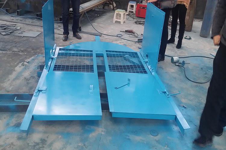 3、將方向調(diào)正,保證防火柵欄兩用門只能向外開,然后將兩扇門同時(shí)用力立起在井口。